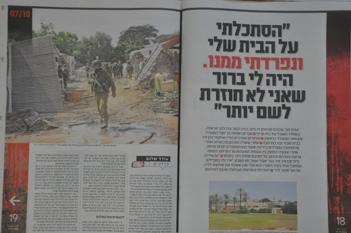 وسردا للصحيفة اللحظات الأولى لمعركة طوفان الأقصى، "لقد مررنا بجميع حروب إسرائيل، لكننا لم نشهد شيئا كهذا من قبل..، كانت حياتنا في خطر داهم. نشعر وكأننا من بقايا النزوح..، سنكون من الآن فصاعدا سكان بلدة مختلفة..".