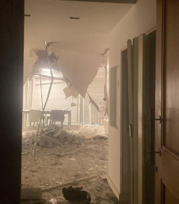 أضرار أثر سقوط صاروخ من قطاع غزة على بيت شمال تل أبيب