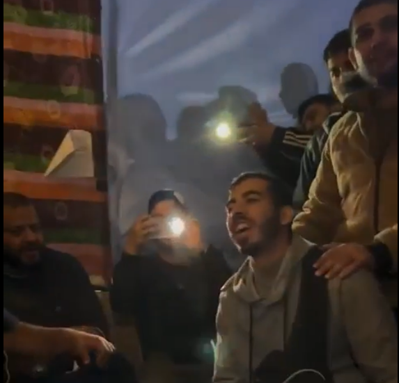 هذا هو طبيعة المشهد لمجموعة من الصحافيين والإعلاميين لما يبدو استراحة من بين القصف والركام ينشدون أنشودة الثبات والصبر سنبقى هنا ليزول الألم.