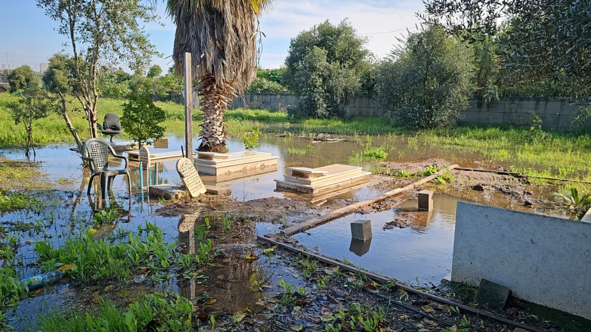 غمرت مياه الأمطار التي هطلت على مدينة يافا في الأيام الماضية عشرات القبور داخل مقبرة طاسو في المدينة، لاسيما تلك الواقعة في شرقي المقبرة.