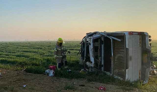 وفتحت الشرطة تحقيقا في ملابسات الحادث الذي وقع على شارع رقم 234 في النقب الغربي، ويستدل من المعلومات الأولية أن مركبة تجارية صغيرة ولأسباب لم تتضح بعد انقلبت على جانبها.
