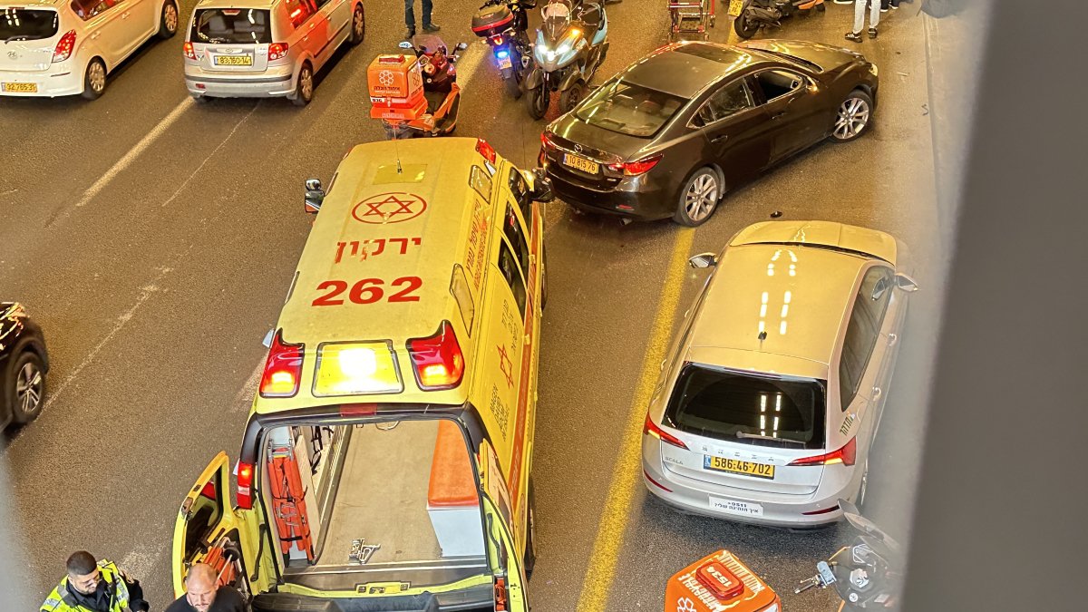 عملية إنعاش لراكب دراجة نارية بحادث طرق على شارع ايالون 20