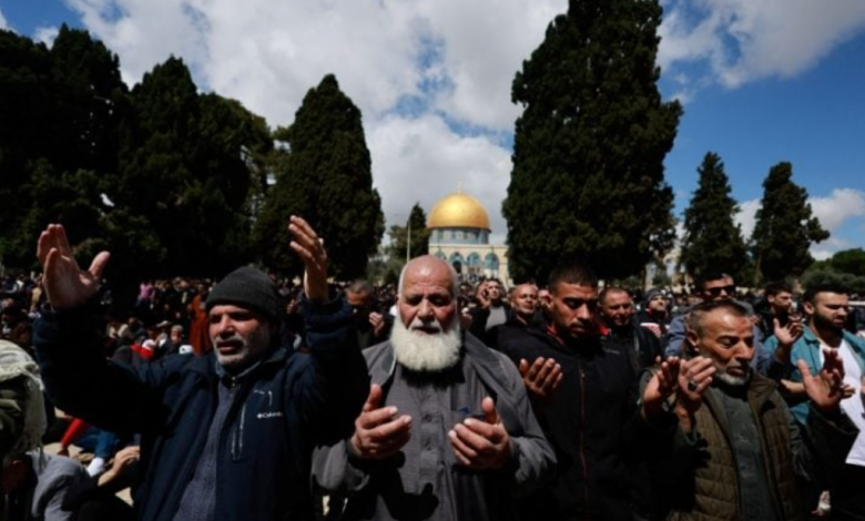 ورغم ذلك، توافد المصلون إلى المسجد، لكن السلطات الإسرائيلية منعت الفلسطينيين الذكور دون سن 55 عاما والإناث دون 50 عاما من سكان الضفة الغربية من الوصول إلى القدس لأداء الصلاة.