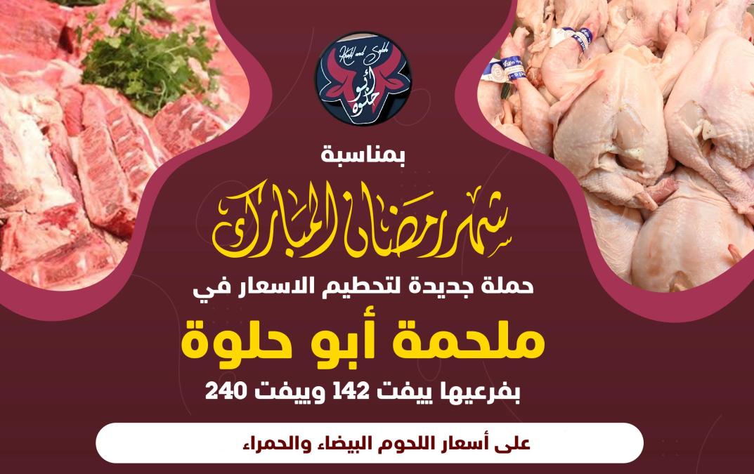 تُعلن ملحمة أبو حلوة بفرعيها في مدينة يافا شارع ييفت 142 - شارع ييفت 240 عن حملة جديدة على الأسعار بمناسبة شهر رمضان المبارك، والتي تشمل مختلف أنواع اللحوم.
