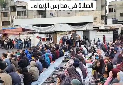 شاهد: فلسطينيون يؤدون صلاة العيد في مراكز الايواء بغزة