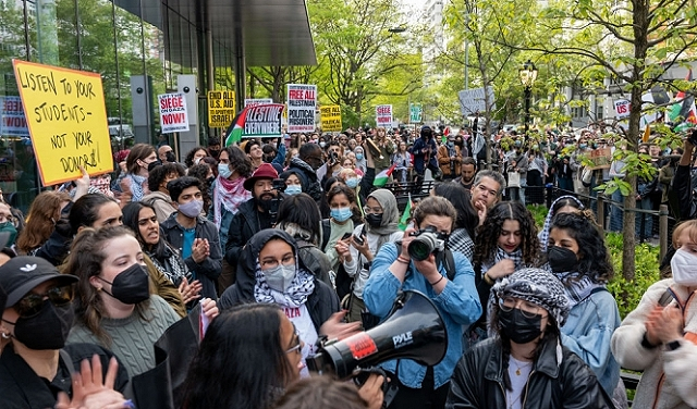 وفي 18 أبريل/ نيسان، بدأ طلّاب وأكاديميّون رافضون للحرب على غزّة، اعتصامًا بحرم جامعة كولومبيا في نيويورك الأمريكيّة، مطالبين إدارتها بوقف تعاونها الأكاديميّ مع الجامعات الإسرائيليّة وسحب استثماراتها في شركات تدعم احتلال الأراضي الفلسطينيّة.