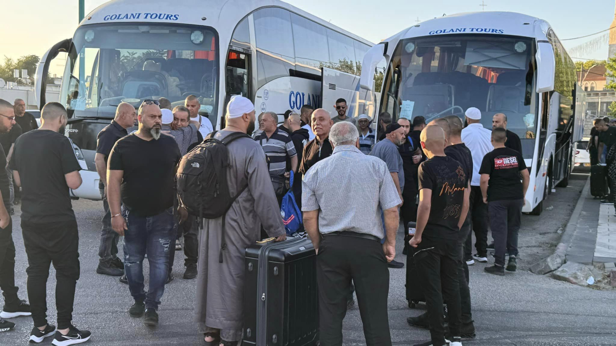 وقد انطلقت الحافلتان باتجاه معبر الحدود الملك حسين في اريحا متجهتان الى عمان للمبيت ليلةً واحدةً في عمان ومن ثم الانطلاق فجر الغد من مطار عمان الى المدينة المنورة متجهين ملبين مكبرين الى مدينة رسول الله لزيارة الحبيب المصطفى والصلاة في المسجد النبوي .