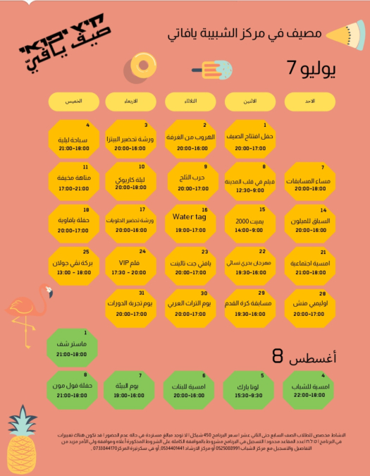 فقط ب 450 شيقل يشمل كل الفعاليات والمواصلات والتسجيل للسنة المقبلة للمركز الشبيبة يافاتي!