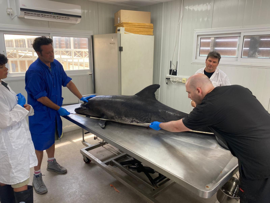 وقال د. أفيعاد شاينين، مدير مركز " الدولفين والبحر " التابع للجمعية المذكورة :" الحديث يدور عن انثى صغيرة ". من جانبه، قام غاي لواين ، من الوحدة البحرية في سلطة الطبيعة والمتنزهات بنقل انثى الدولفين للتشريح في مختبر في أشدود، بحيث ظهرت عليها علامات صيدها بشبكة للصيد.