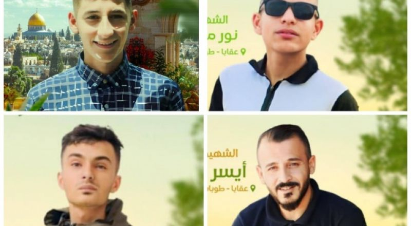 والشهداء الأربعة هم: الشهيد أيسر محمد قاسم أبو عرة (36 عاماً)، والشهيد نور محمد ياسين الياسين (19 عاماً)، والشهيد عميد ياسين غنام (19 عاماً)، والشهيد الطفل بلال عز الدين صوافطة (14 عاماً).