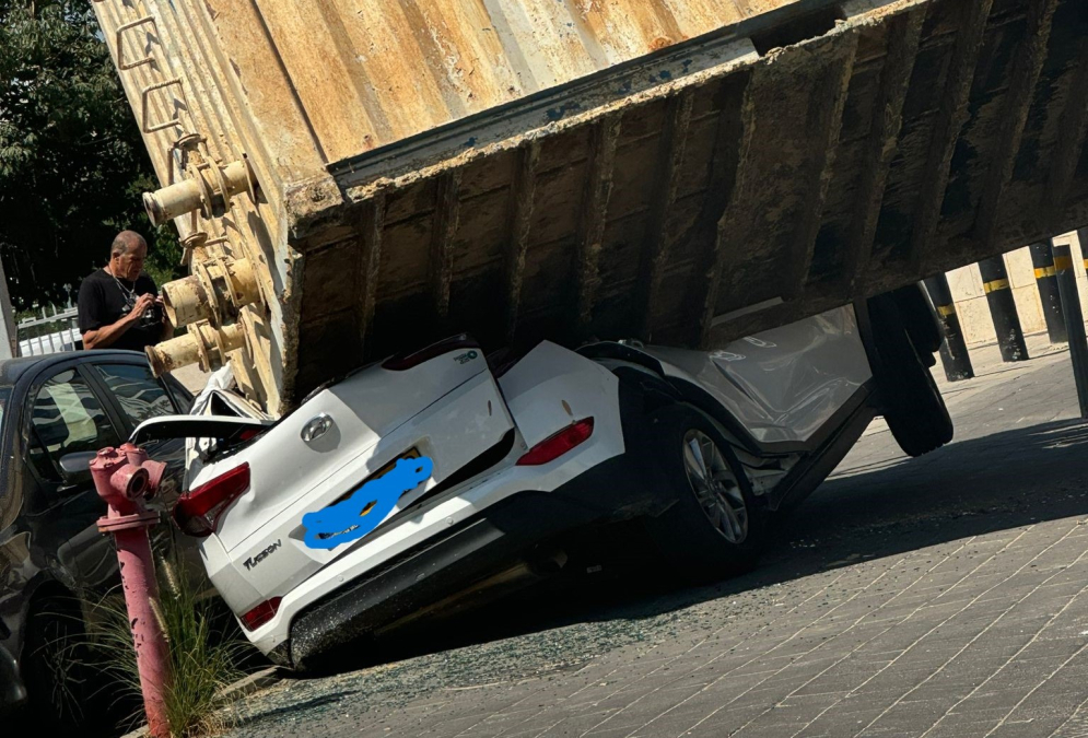 إصابة متوسطة لشخص اثر سقوط حاوية على مركبة في بات يام