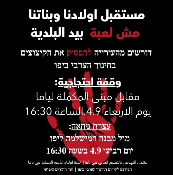اغلقوا المصليات ، واغلقوا روضات للعرب ، لم يفوا بوعدهم بفتح مدرسة للتربية الخاصة ولم تحركوا ساكنا واليوم تعلنون عن وقفة احتجاجية لرفع الرسوم . اصبحنا شعب مادي ، لا مبادئ لدينا ولا نهتم سوى بالمال .