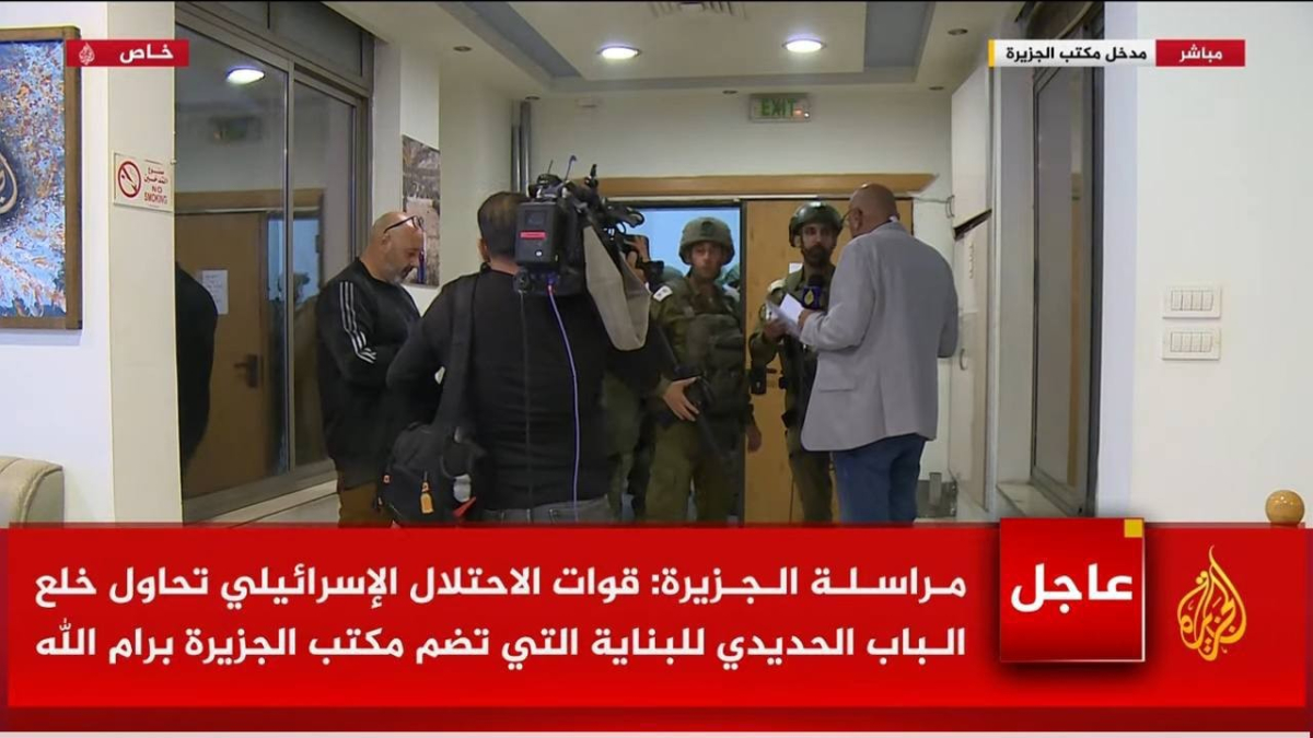 اقتحمت قوات الجيش الإسرائيلي فجر اليوم الأحد، مكتب فضائية الجزيرة في مدينة رام الله بالضفة الغربية المحتلة، وأغلقته لمدة 45 يوما بموجب أمر عسكري.