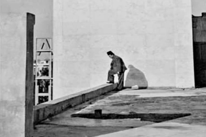 يافا: صورة نادرة لعامل يتفقد سطح مبنى سينما الحمرا عام 1945