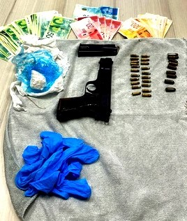 وجاء في البيان " صادرت الشرطة مسدسًا عيار 9 ملم من نوع براون محشوًا، ومخزنًا يحتوي على طلقات عيار 9 ملم، و21 طلقة مسدس عيار 0.22 ملم".