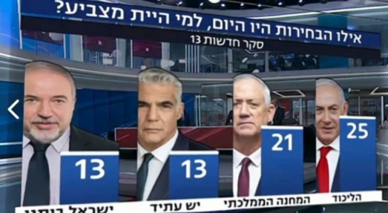 أما حزب "يش عتيد..هناك مستقبل " بقيادة يائير لابيد سيحصل على 13 مقعدا، على غرار حزب "إسرائيل بيتنا" بقيادة أفيغدور ليبرمان، الذي انخفض بفارق مقعد واحد مقارنة بالاستطلاع السابق.