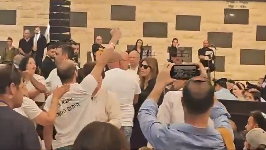 عائلات القتلى الإسرائيليين انفجروا في وجه نتنياهو أثناء بدء خطابه خلال مراسم تأبين قتلى 7 أكتوبر والحرب، قائلين: "اخجل من نفسك".