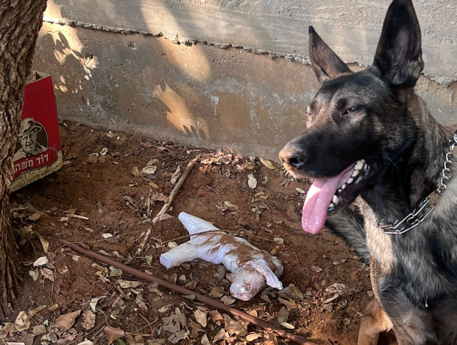 وأثناء عمليات التفتيش بين العشب، أشار كلب بوليسي الى منطقة معينة، حيث عثر رجال الشرطة بعد التفتيش على سلاح من نوع "كارلو" مع خرطوشة ذخيرة.