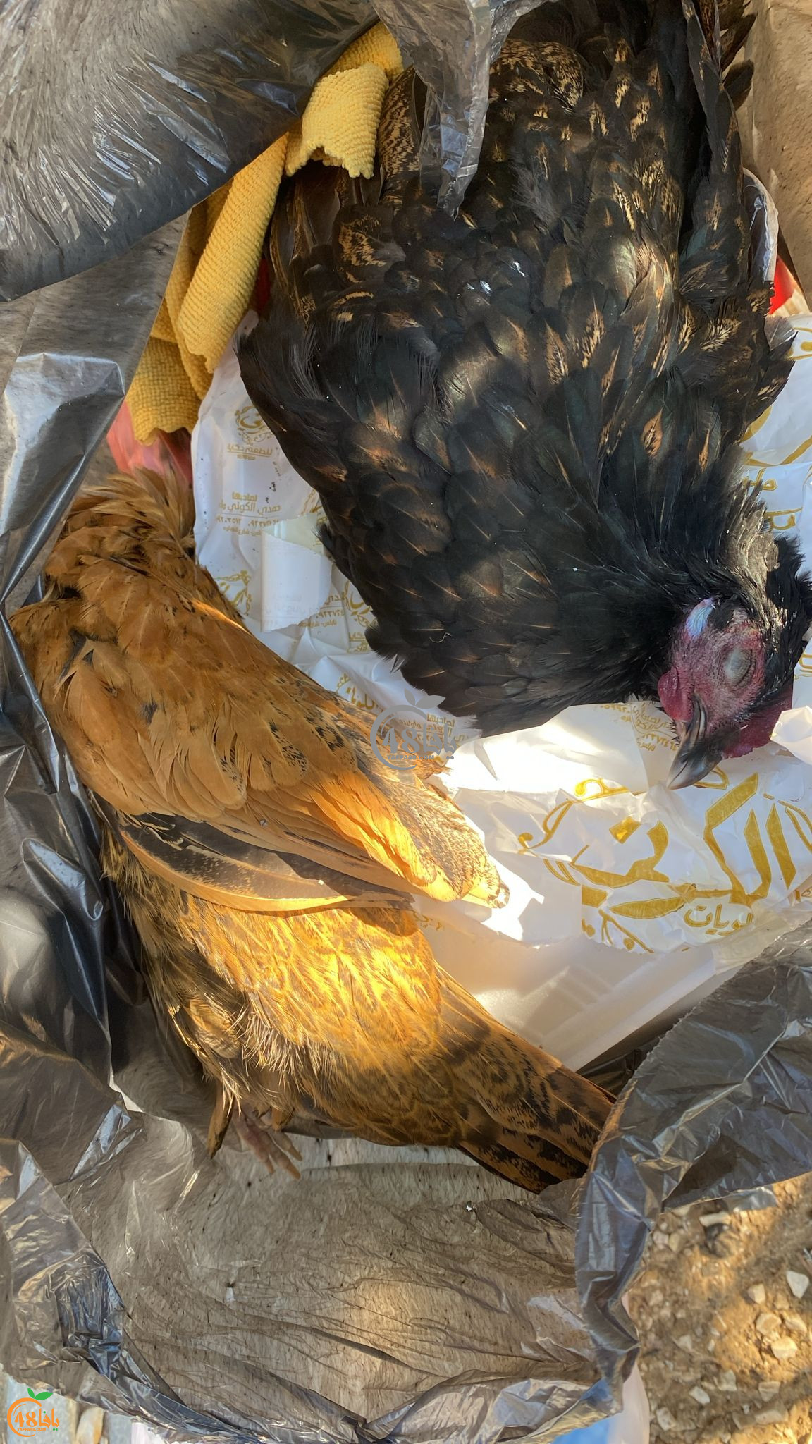 وقد وصل موقع يافا 48 اليوم مزيد من الصور للدجاجات النافقة على جانب الطريق، وذلك على ما يبدو اثر تعرضها للسمّ أو المرض.