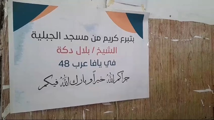 بادر الشيخ بلال دكة امام مسجد الجبلية لحملة جمع تبرعات لإغاثة أهالي قطاع غزة خاصة الصمّ والبكم، حيث تم جمع تبرعات من رواد المسجد وايصالها الى الأهالي هناك على شكل قسائم شرائية "مواد غذائية" من احد المحلات التجارية في القطاع.
