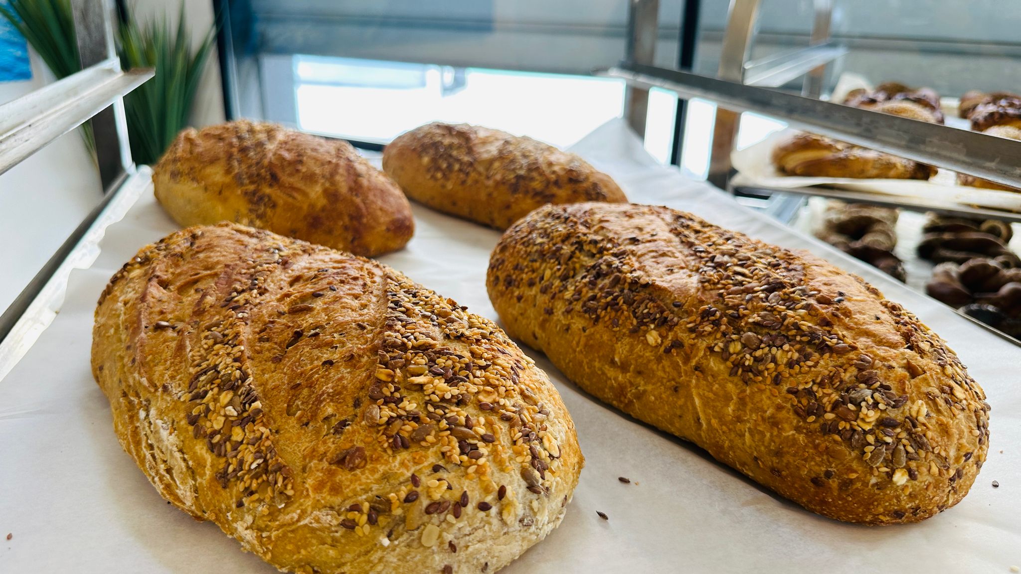 ويقدّم مخبز ومقهى "المينا" تشكيلة واسعة من المخبوزات والمعجنات الطازجة والمُحضّرة بأحدث التقنيات، حيث تشمل قائمة المنتجات: البيتزا، معجنات الجبن، الفينو، الكرواسون، المخبوزات المحلاة، وغيرها من الأصناف التي تلبي مختلف الأذواق.