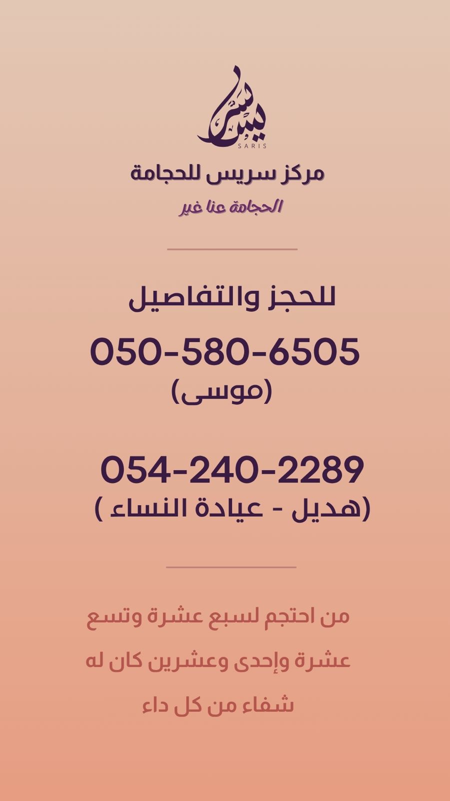 مركز سريس للطب البديل والعلاج بالحجامة ينتظر قدومكم في جميع ايام الاسبوع، من أفضل مراكز الحجامة والطب البديل بما يزيد عن 18 عاماً من الخبرة، حيث يتم تطبيق العلاج على سنة النبي عليه الصلاة والسلام، باستخدام أحدث التقنيات والأدوات بالطرق العلمية المتطورة والأخذ بالاحتياطات اللازمة.