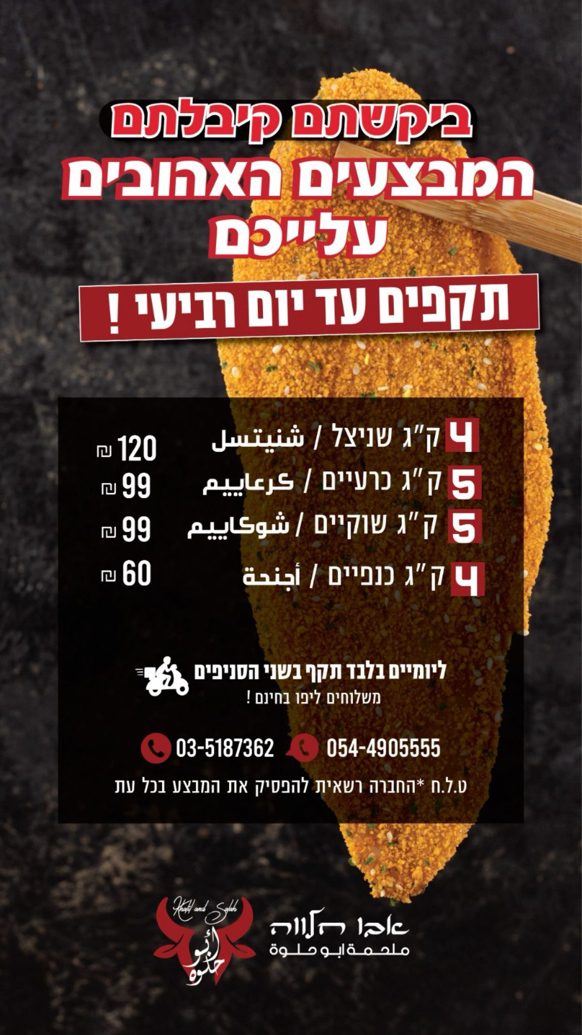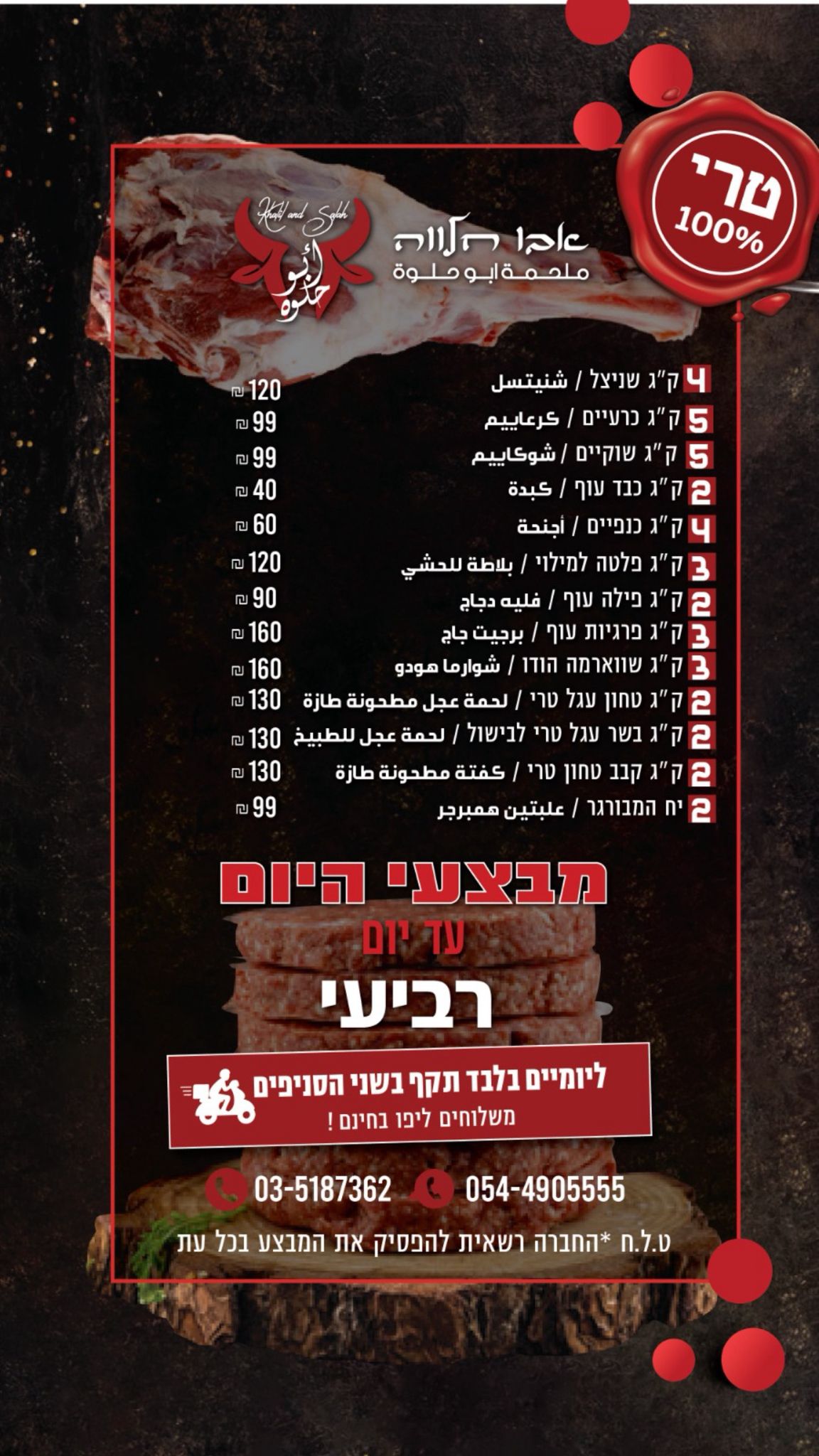 اليوم الأربعاء آخر أيام حملة تحطيم الأسعار التي أطلقتها ملحمة أبو حلوة قبل يومين، والتي تشمل مجموعة واسعة من اللحوم بمختلف أنواعها، سارعوا للاستفادة قبل نهاية الحملة.