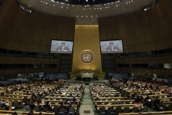 اعتمدت الجمعية العامة للأمم المتحدة تعتمد بأغلبية ساحقة قرارا يؤيد "إعلان نيويورك بشأن التسوية السلمية للقضية الفلسطينية وتنفيذ حل الدولتين".