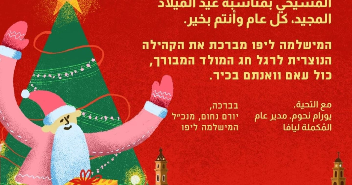 المكملة ليافا تُهنئ المجتمع المسيحي بمناسبة عيد الميلاد المجيد ، كل عام وانتم بخير.