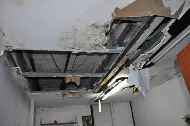 اشتكى المواطن "يوسف أبو سراري - أبو وسام" من سكان حي النزهة بمدينة يافا من اهمال شركة العميدار في إصلاح البيت الذي يسكنه بالرغم من دفعه كل المبالغ المترتبة عليه، حيث تضرر البيت بشكل كبير من مياه الأمطار في أول فصل الشتاء واليوم انهار جزء من السقف.