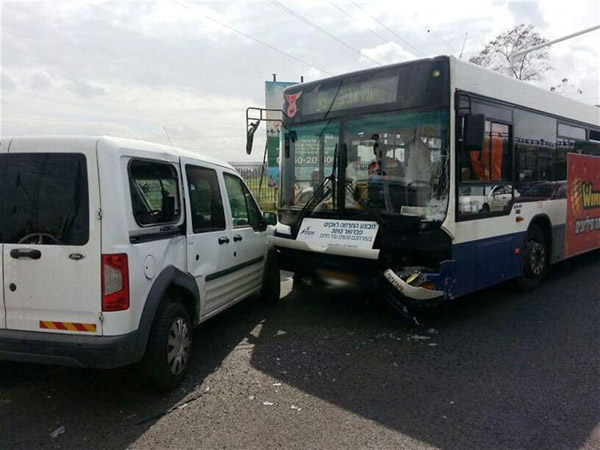 بالصور: إصابة شخص بحادث طرق بين حافلة ومركبة بالقرب من يافا