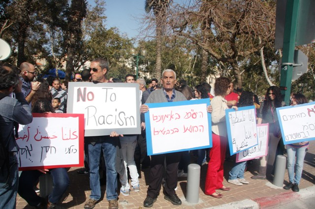 نظم عدد من النشطاء في مدينة يافا ظهر اليوم السبت تظاهرة احتجاجية في حديقة العجمي تنديداً لما شهدته الأيام السالفة من اعتداءات عنصرية بحق المواطنين العرب في المدينة كان آخرها الإعتداء على الشاب حسن أصرف أثناء مزاولة عمله في شارع هياركون بتل أبيب.