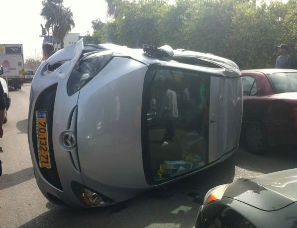 اللد: إنقلاب مركبة وإصابة متوسطة لسائقها وسط المدينة