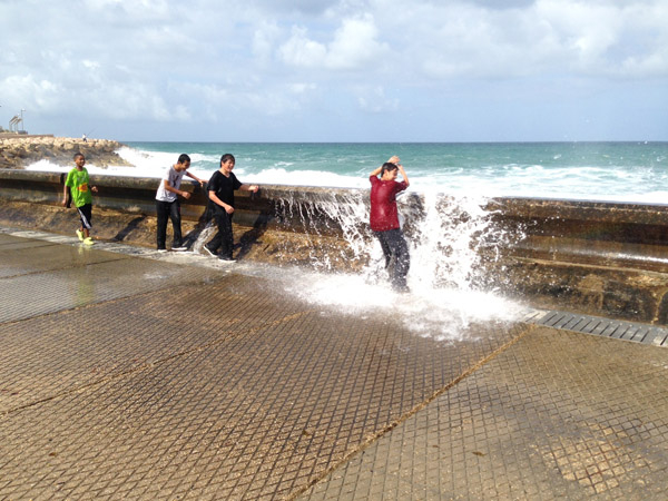 بالفيديو: لعبة مطاردة الأمواج لمجموعة من الصبيان في ميناء يافا
