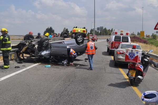 بالفيديو: إصابة متوسطة لسائق بحادث طرق ذاتي في شارع 6 بين مدينتي اللد والرملة