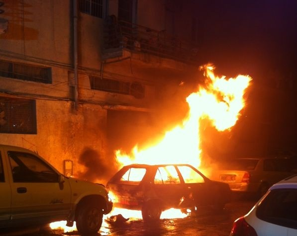 ووفق معلومات نقلا عن مصادر شرطية وطبية فإن إنفجارا وقع قبل نشوب الحريق ومن غير المؤكد معرفة ما إذا كان الحريق ناجما عن عبوة ناسفة او مجرد حريق او تماس كهربائي تسبب بحريق بسيارة كانت مركونة في جانب شارع ابو العافية الواصل بشارع سلمة .