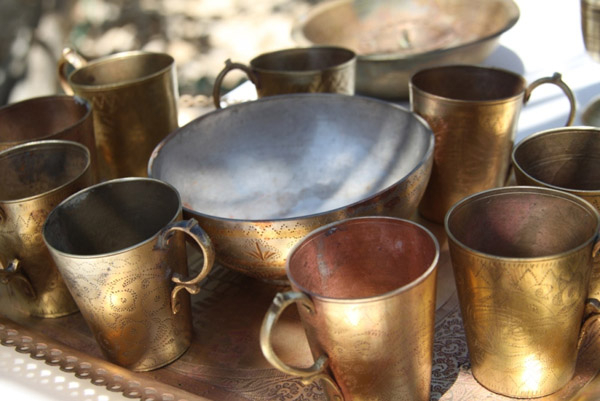يشار إلى أنه تم العثور على فناجين وأواني وصحون نحاسية نُقش عليها آيات قرآنية وبعض الجمل باللغة العربية.