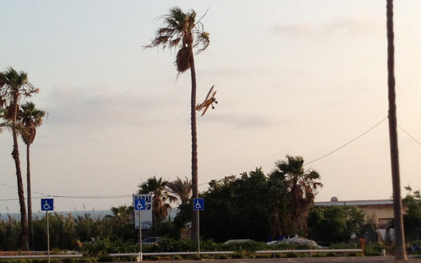 قام أحد الطيارين عصر أمس الجمعة بالتحليق بطائرته الصغيرة فوق متنزه العجمي بمدينة يافا وذلك على علو منخفض، حيث قال شهود عيان أن الطائرة كانت على ارتفاع 30 متراً عن الأرض، كما وكان الطيار يقوم بحركات بهلوانية في الهواء.