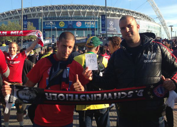 وصل موقع يافا 48 مجموعة من الصور لشباب من مدينة يافا يتواجدون في هذه اللحظات في ملعب ويمبلي اللندني لحضور المباراة النهائية لدوري أبطال أوروبا والتي ستجمع الفريقين الألمانيين "بايرن ميونخ وبروسيا دورتموند".